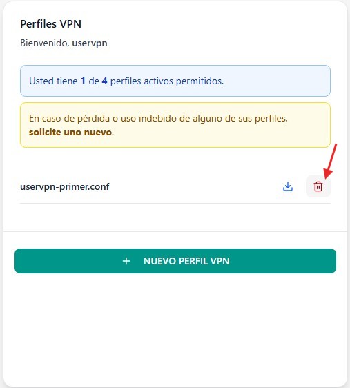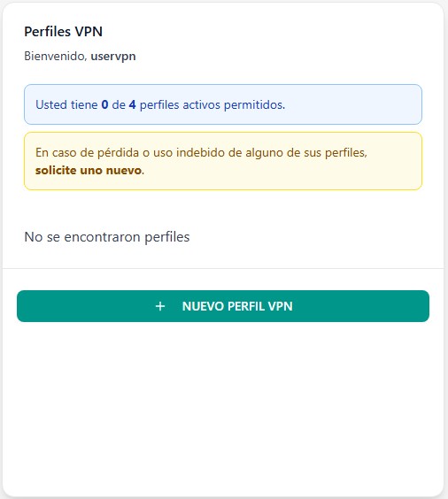 Dentro de tu sesión, haz clic en el botón "Nuevo Perfil VPN".